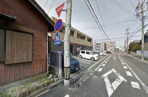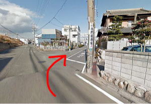 | A右手に新日本空調三重の看板が見えるので、通過してすぐの交差点を右に曲がったすぐ右手の2階建てのコーポの1階にあります。 | Aの交差点付近の景観 |
